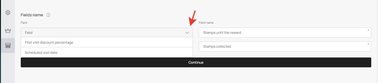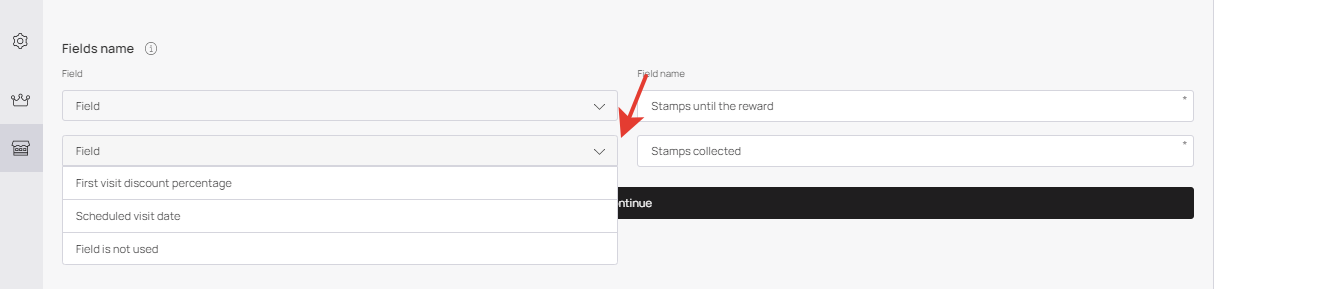 Name of fields - here you can choose from a drop-down list the names of the fields to be displayed on the card.