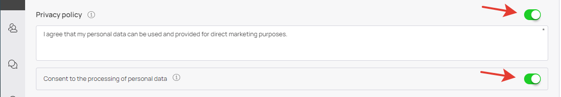 8. Personal Data Policy - you can edit the preset text and include or exclude this information from the card issuance form.
