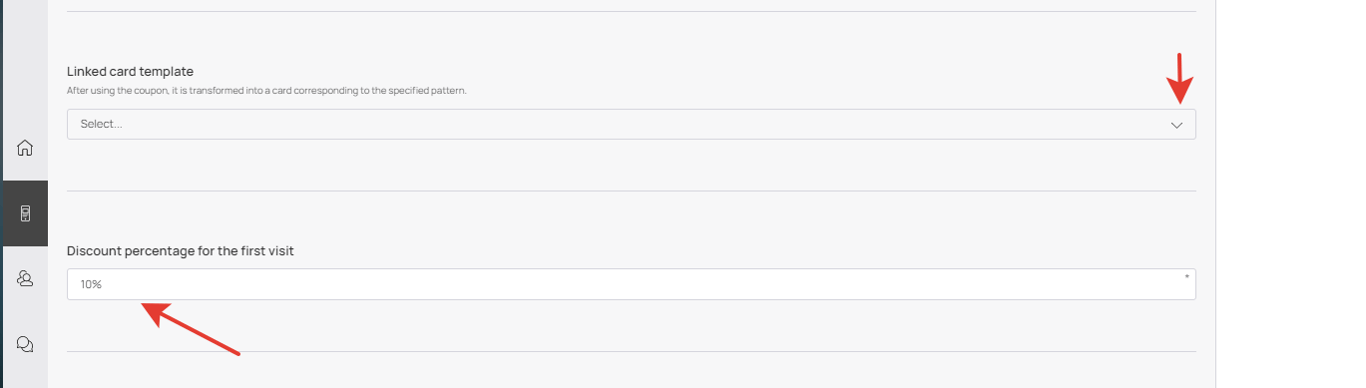5. Discount Percentage for the first visit - specify what percentage discount will be available on the coupon