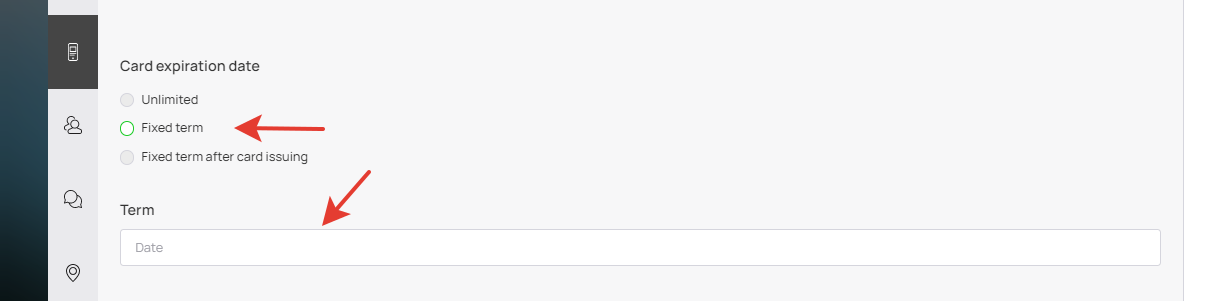 - Fixed term - you independently determine the validity period of the card, which is calculated from the date of creation of the card.