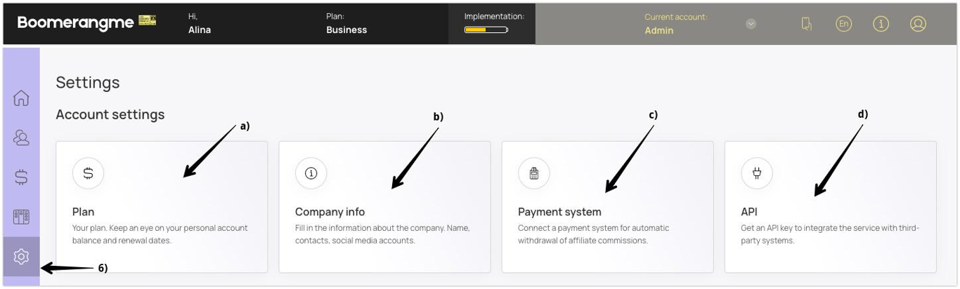 6. If you go to the “Settings” section, you can edit Account (personal) settings