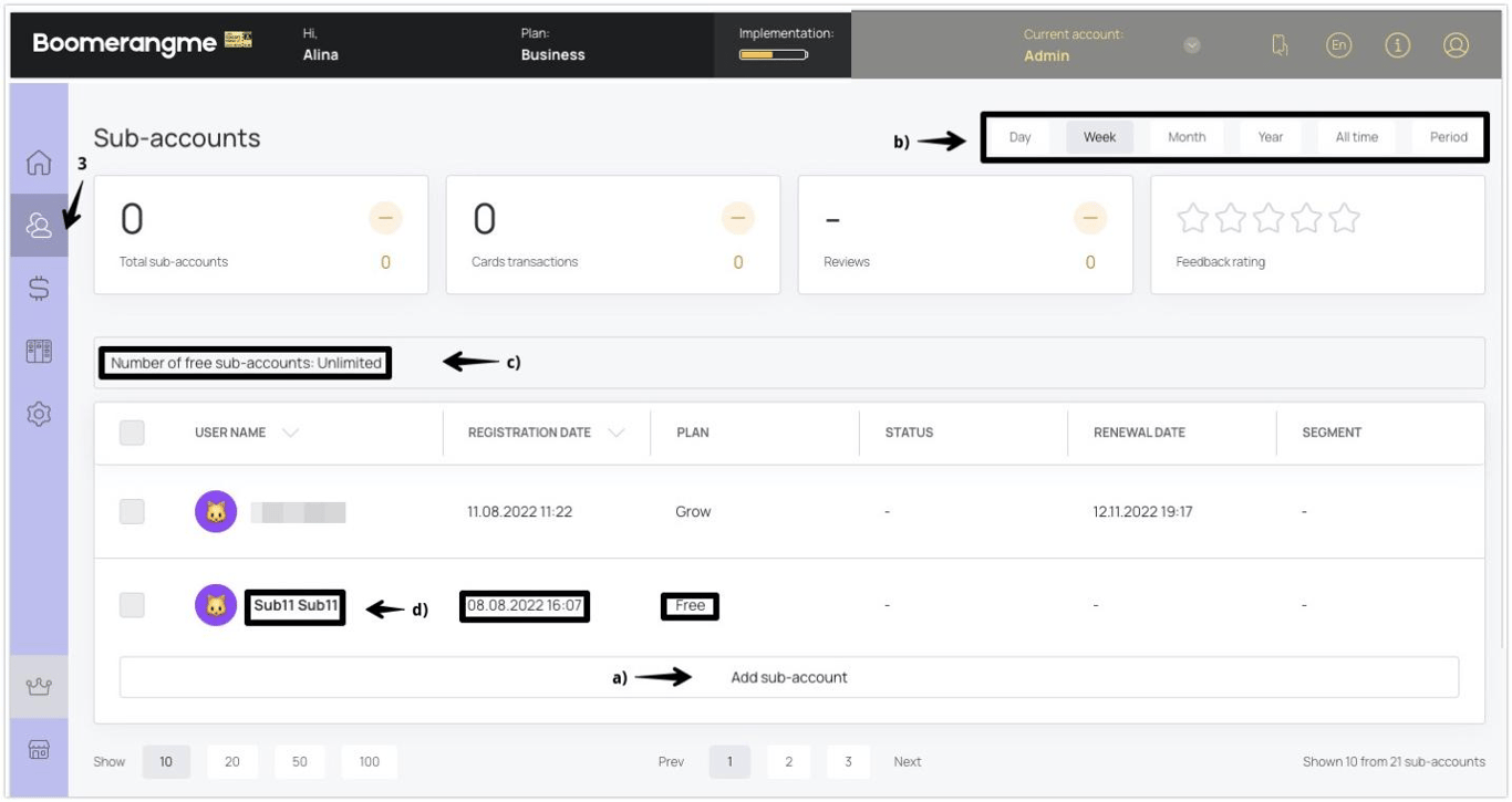 3. If you switch to “Sub-accounts” in your dashboard you can: